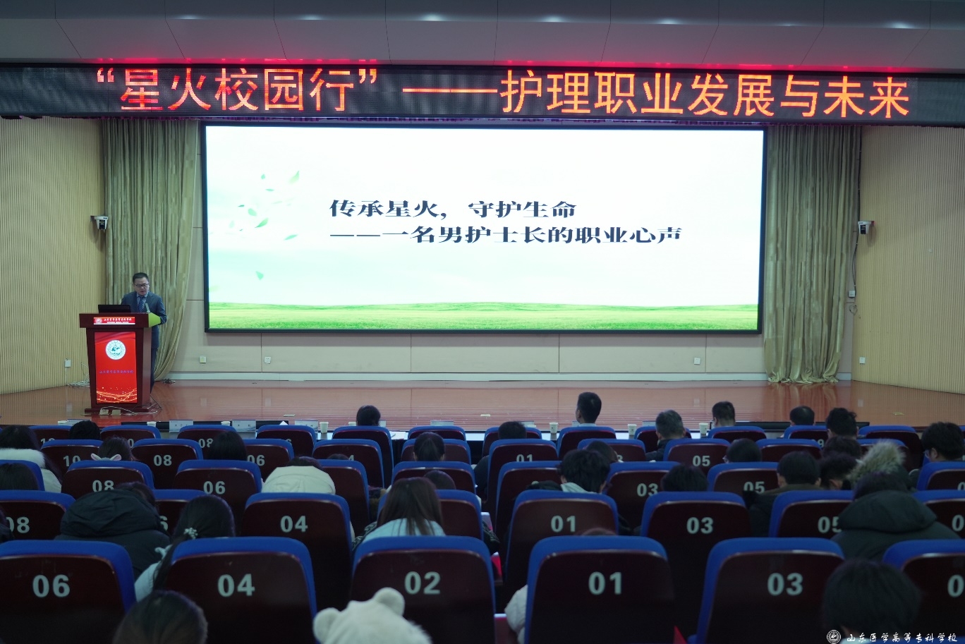 护理系、学生工作处(武装部)、临沂市人民医院等相关人员及2024级学生代表参加报告会。