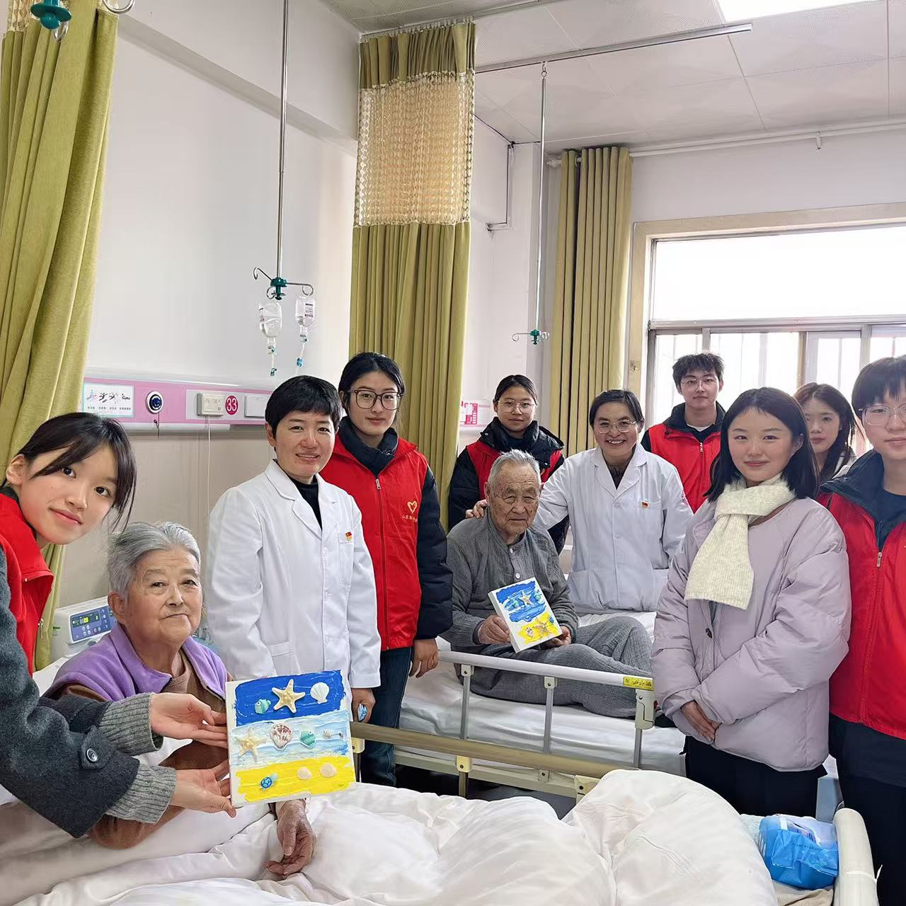 2024年12月15日,护理系教师及“护小爱”志愿服务队成员于兰山区妇幼保健院开展第一期安宁疗护志愿服务活动,为患者表演精心编排的歌曲和魔术节目,赠送手工画作,手拉手和患者聊家常。